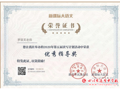 在2020年新课标大语文暑期读写计划中,遂中学子积极参与并斩获奖项。