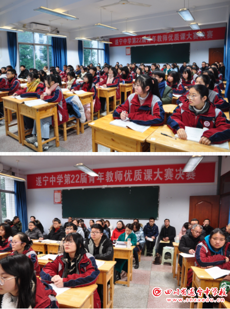 青春赛场,筑梦课堂。12月24日-25日,遂宁中学第22届青年教师优质课竞赛决赛在在两校区同时举行。除了学校部分教师参加,更邀请了兄弟学校部分学科教师到场聆听。语文、数学、英语、物理与信息技术、政史地、生化和艺体七个小组分组进行。两校区老师们经过前期激烈的预赛展示,以及各备课组和教研组的认真评选,最终37位老师成功进入本次决赛。