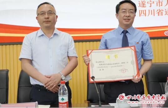 活动中,王凌副校长代表学校为周永刚检察长颁发了法治副校长聘书。