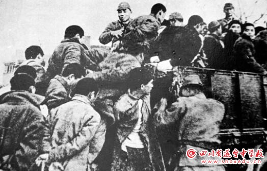 日军将大批南京青壮年捆绑后,押往郊外集体屠杀。图片来源:新华社