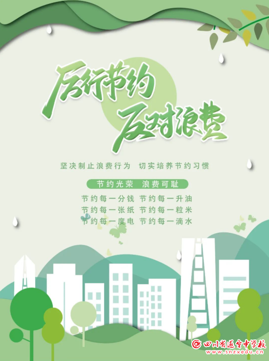 勤俭节约是中华民族的传统美德。“一粥一饭,当思来之不易;半丝半缕,恒念物力维艰。” 2021年4月29日,《中华人民共和国反食品浪费法》颁布并执行。为切实贯彻落实习近平总书记制止餐饮浪费行为的重要指示精神及上级有关部门工作要求,使“厉行节约,反对浪费”成为从孩子做起的自觉行为,在《中华人民共和国反食品浪费法》颁布实施一周年之际,遂宁中学倡议同学们从我做起,节约每一粒粮食,发扬勤俭节约的优良作风,养成良好的行为习惯,共同努力让节约粮食成为一种新风尚。
