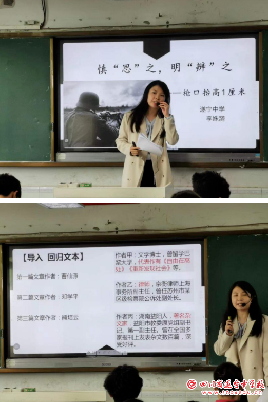 在教学研讨环节中,西眉中学语文组备课组长袁春泽主要围绕教师自身修养、学生自主学习能力和教学过程等方面进行了点评。西眉中学副校长李军辉则充分肯定了遂中执教教师功底深厚扎实、教学方法灵活、课堂启发得当,有助于学生全面成长。