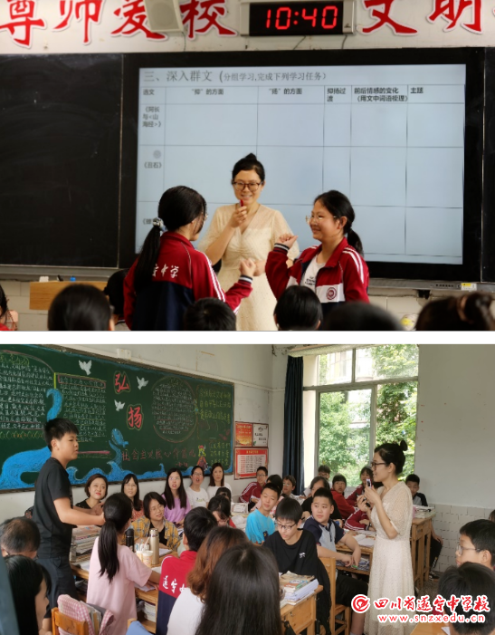 立身垂范,促进学生亲师信道;见贤思齐,引领教师专业发展。为进一步贯彻遂宁市委教师发展大会精神,打造“有趣、有情、有理”的“三有课堂”,加强“六让”“四地”课堂建设,充分发挥名优教师的示范引领作用,助力青年教师成长,提升遂中语文教研组的综合水平。遂宁中学语文组结合当前“双新”“双减”背景,紧扣教育新形势,围绕教学新要求,通过以点带面,以优带新的方式,开展了“群文阅读”名师示范课活动。五堂精彩纷呈的示范课,展示了名师风采,有助于示范课堂教学,不断提高语文组教师的整体教育教学水平。