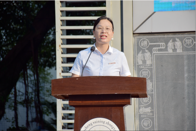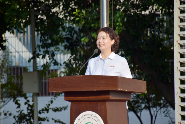 新学期,新开始,何亚杰校长希望同学们谨记“强国复兴,必定有我”“明体达用,卓然伟器”“遂中学子,志在四方”三句话,以践行“强国有我”的铮铮誓言开启新学年的新征程,并以优秀的遂中学子们为榜样,努力学习、增强本领、卓然伟器、接续奋斗!同时,希望同学们要志在四方、心怀天下。最后,她希望老师们继续保持奋斗的姿态,助力学校阔步走上高质量发展的大道,引领学生们一路向前,奔向四方,还自己一个不悔的人生!