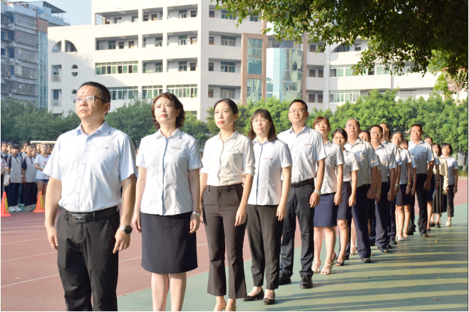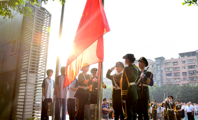 伴随着雄壮嘹亮的国歌声,鲜艳的五星红旗冉冉升起,全体师生行注目礼,齐唱国歌。雄壮的歌声响彻校园,鲜艳的旗帜灵动飞扬,激励着遂中师生逐梦前行。