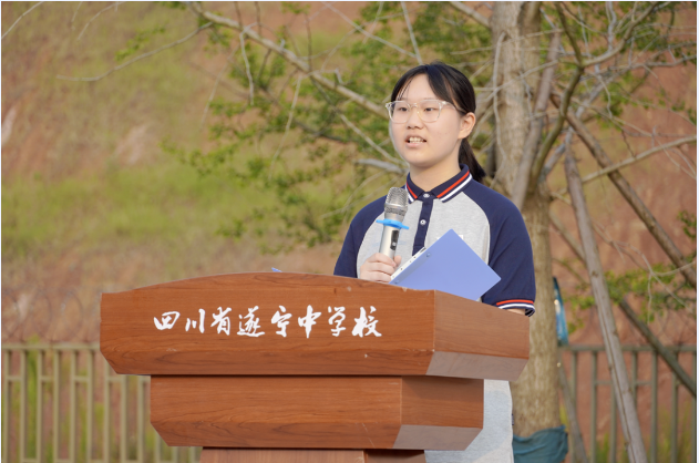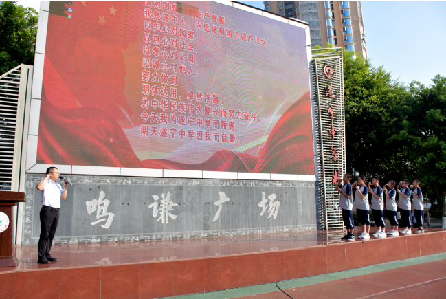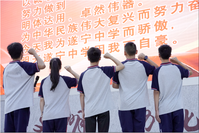遂中誓词有如明灯指引师生们前进的方向,铿锵有力的誓言回响在校园上空迸发出遂中人积极进取、奋力拼搏的昂扬斗志。