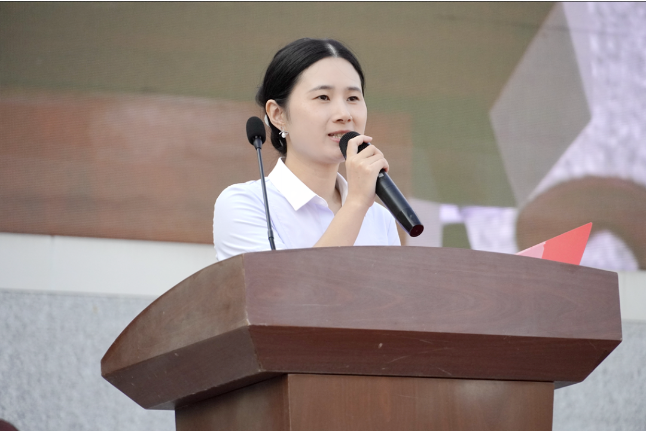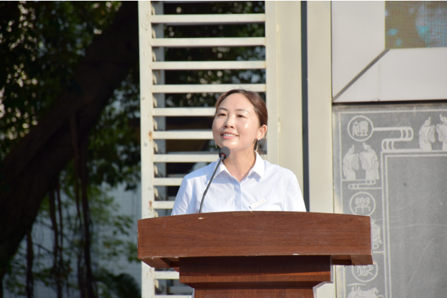 ▲学生发展中心副主任余莉主持育才校区开学典礼